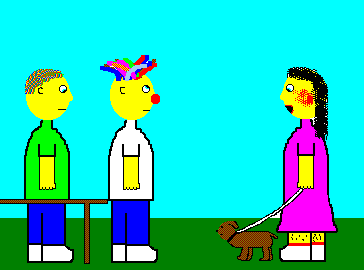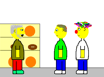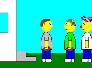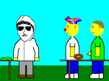 Cow Chip and Lance walked up to the man with the sweatshirt. “Hey, mister? Are there any footballs over there?”